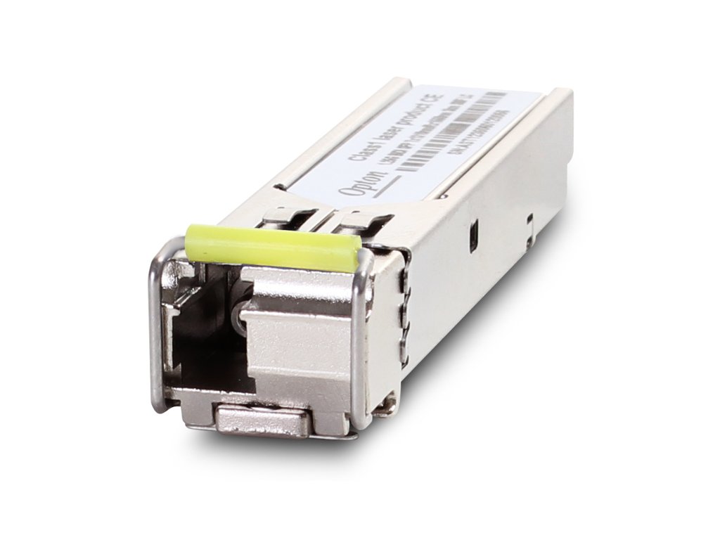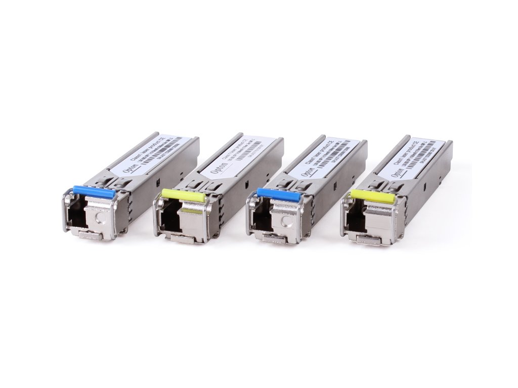 Modul Opton SFP pro připojení dvou vzdálených (až 3 km, 10 dB) přepínačů. Modul Opton je kompatibilní se zařízeními, která nemají výrobcem blokované vložky (D-Link, TP-Link, Planet, MikroTik a další). Zařízení spolupracuje s jedním jednovidovým optickým vláknem a takové řešení je možné díky technologii WDM - tj. násobení vln, které spočívá v přenosu nezávislých signálů na různých vlnových délkách, což výrazně snižuje náklady na instalaci. Signál je přenášen rychlostí až 1,25 Gb/s.