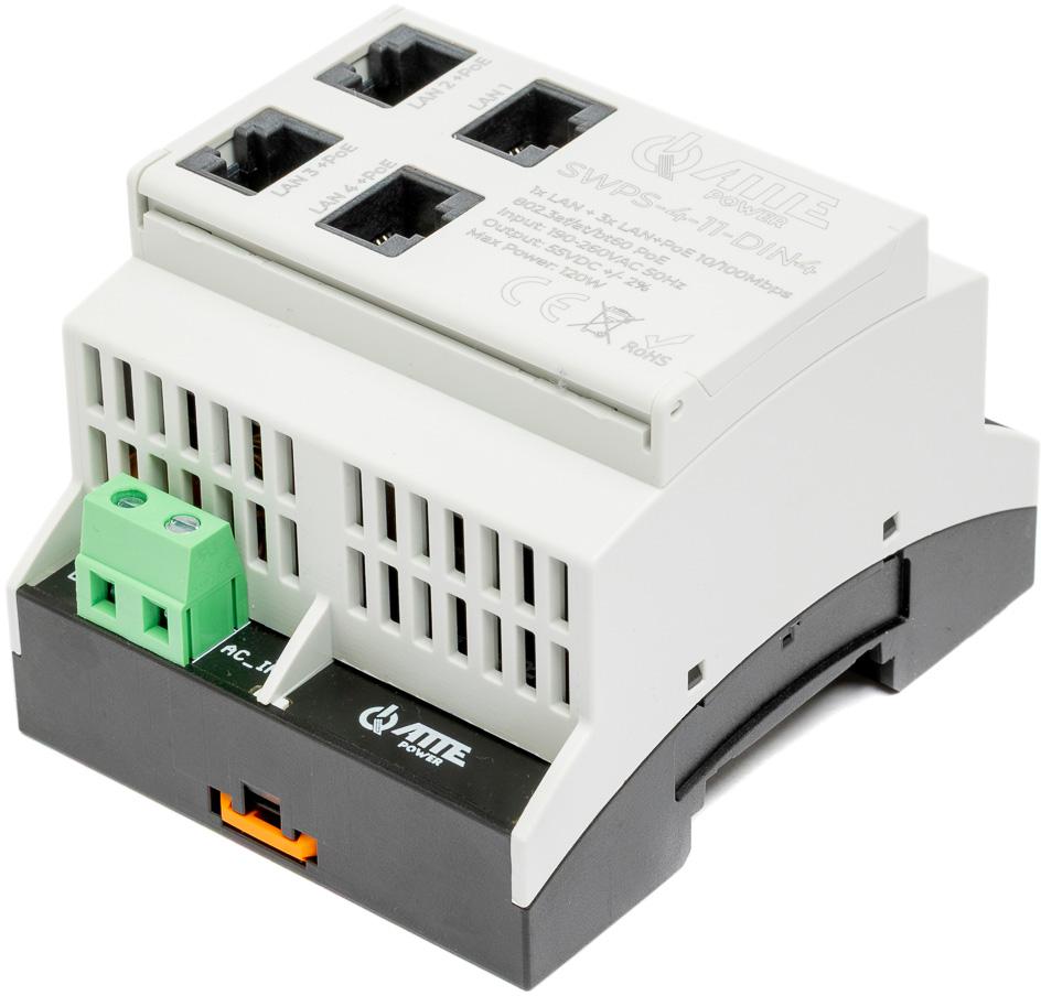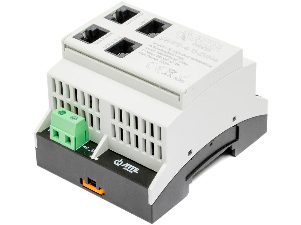 4portový přepínač PoE s integrovaným zdrojem napájení pro lištu TH35 ATTE SWPS-4-11-DIN4