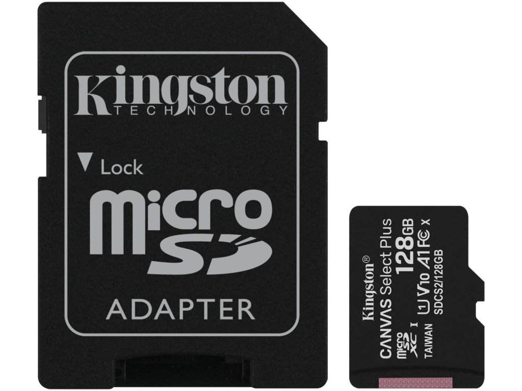 - 1 x Paměťová karta Kingston Canvas Select Plus 128GB 100MB microSDXC CL10 UHS-I + adaptér SD 23910