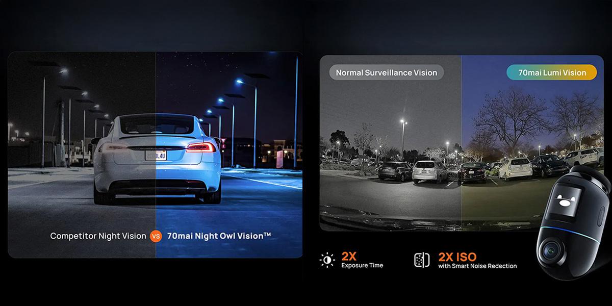 Díky technologiím Night Owl Vision a Lumi Vision poskytuje videorekordér jasný obraz i za špatných světelných podmínek. Systém AI Motion Detection 2.0 ve spolupráci s Hallovými senzory umožňuje efektivní sledování událostí během jízdy i v parkovacím režimu, čímž zvyšuje bezpečnost vozidla.