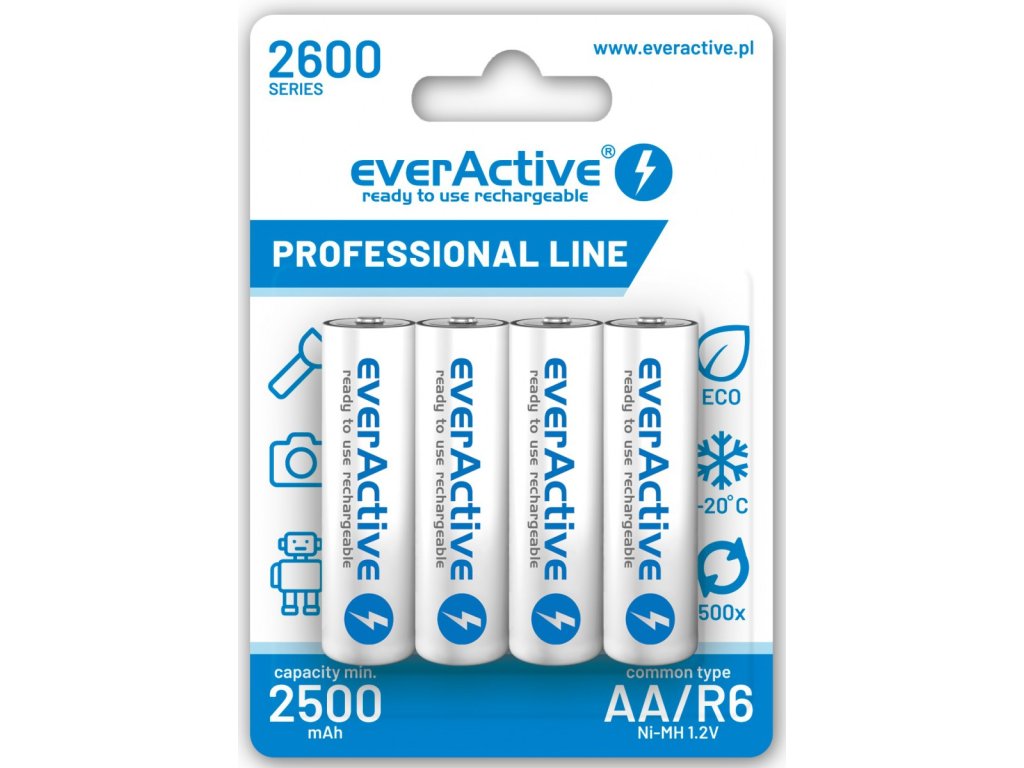AA / R6 everActive Ni-MH 2600 mAh dobíjecí baterie připravené k použití Professional line (krabička 4ks)