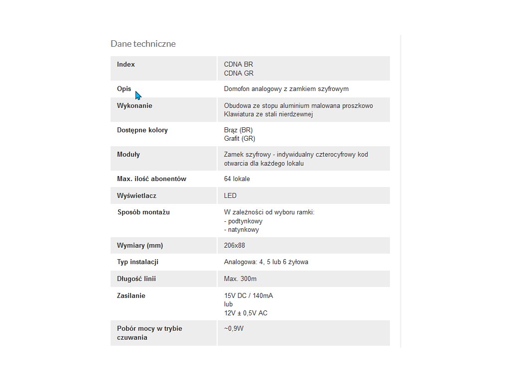 ACO CDNA GR Interkomová stanice pro analogové instalace, bez volacích modulů