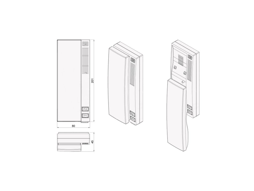| Rozměry telefonu Uniphone: | 201 x 80 x 45 mm |