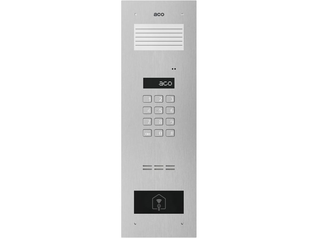 | Popis | Digitální interkom s kódovým zámkem, malým seznamem popisů a čtečkou přiblížení |