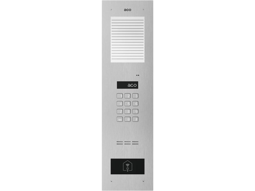 | Popis | Digitální dveřní vstupní systém s kódovým zámkem, středním hlasovým seznamem a bezkontaktní čtečkou |