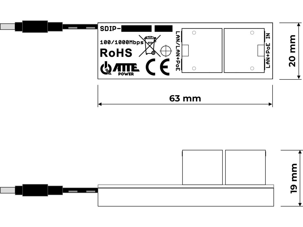 Adaptér PoE ATTE SDIP-12-121 Gigabitový adaptér PoE snižující napětí na 12 V