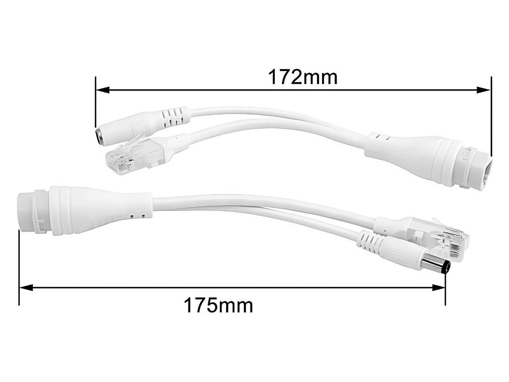 Sada kabelů PoE (napájení a signál) umožňuje napájení IP kamer a přenos dat prostřednictvím jediného síťového kabelu RJ45. Díky vodotěsnému provedení ji lze používat i ve venkovním prostředí při zachování spolehlivosti přenosu a napájení.