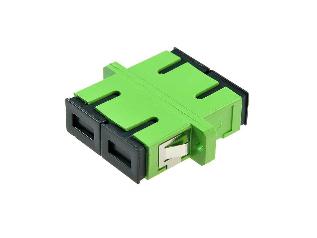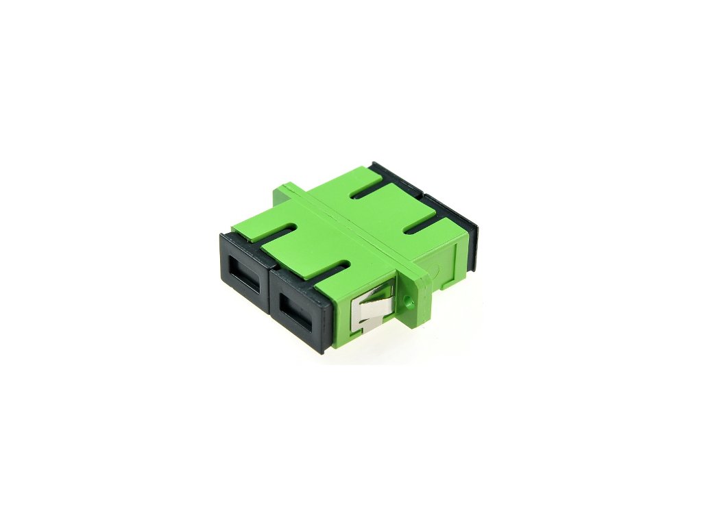 Adaptéry optických vláken jsou mechanická zařízení určená k připojení optických konektorů SC / APC SM Dimplex. Obsahují spojovací dutinku, takže spojení dvou konektorů je trvalé a stabilní. Adaptér má ochranné krytky na obou stranách konektoru. Díky otvorům lze adaptér namontovat na čelní desku i do spínacích a účastnických zásuvek.