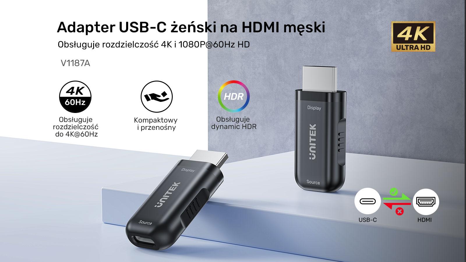 UNITEK V1187ABK01 - adaptér USB-C na HDMI 4K@60Hz v kompaktním provedení