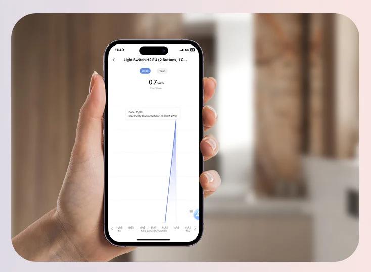 Spínač Aqara Light Switch H2 EU umožňuje uživatelům přesně sledovat a optimalizovat spotřebu energie. U instalací s neutrálním vodičem spínač generuje podrobné zprávy o spotřebě energie na denní, týdenní a měsíční bázi, což usnadňuje řízení výdajů na energii v domácnosti. U instalací bez nulového vodiče je možné zadávat hodnoty zatížení ručně, což umožňuje základní sledování spotřeby.