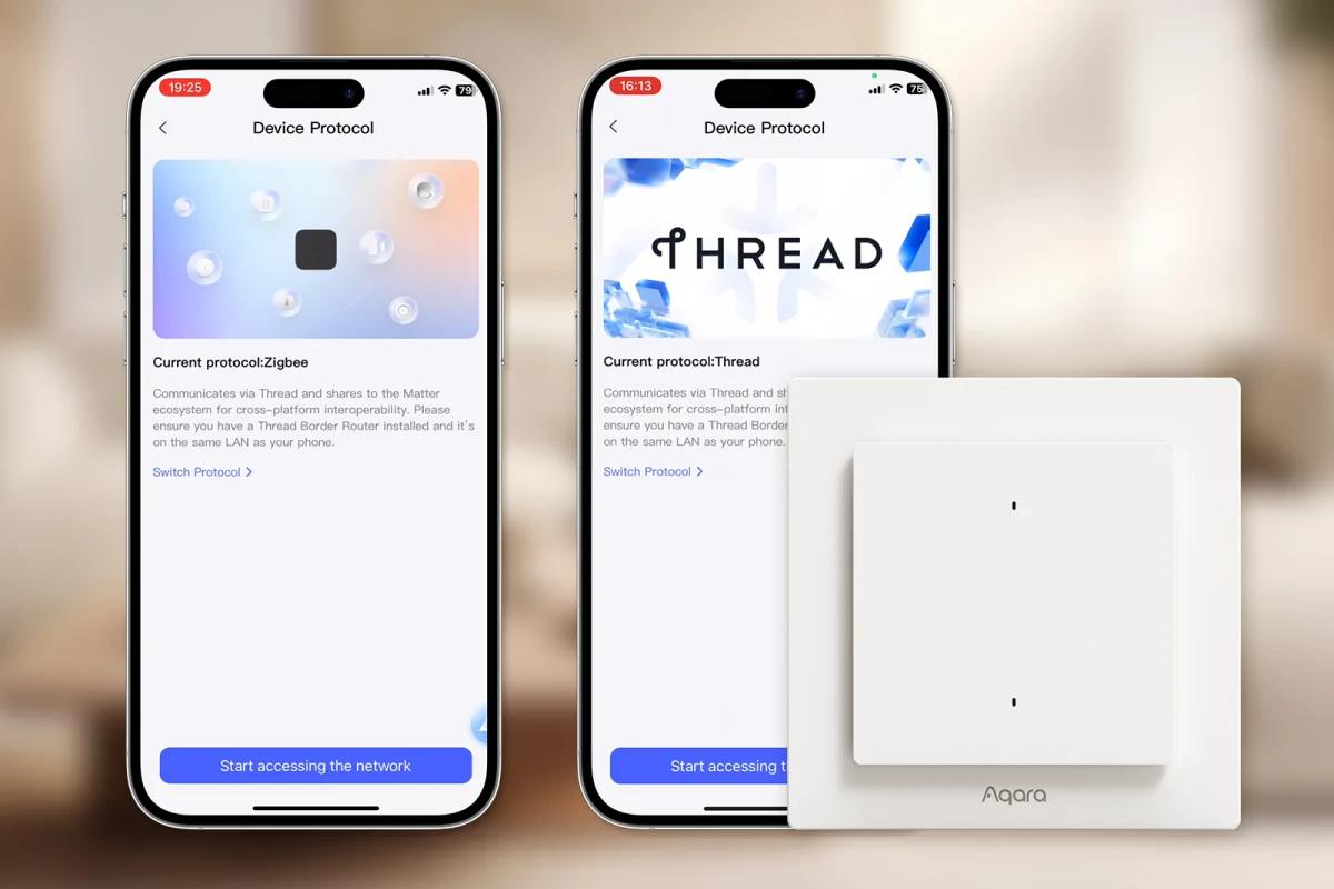 Spínač světla Aqara H2 EU využívá protokoly Matter over Thread i Zigbee, takže může spolupracovat s celou řadou zařízení třetích stran a využívat exkluzivní funkce aplikace Aqara Home. Protokol Thread umožňuje rychlou a stabilní komunikaci se zařízeními inteligentní domácnosti, zatímco protokol Zigbee nabízí další funkce, jako je konfigurace LED a přístup k technologii MARS-Tech, která výrazně zvyšuje spolehlivost připojení. Pro použití zařízení s konkrétním ekosystémem Matter je zapotřebí řídicí jednotka Matter daného ekosystému a hraniční směrovač Thread.