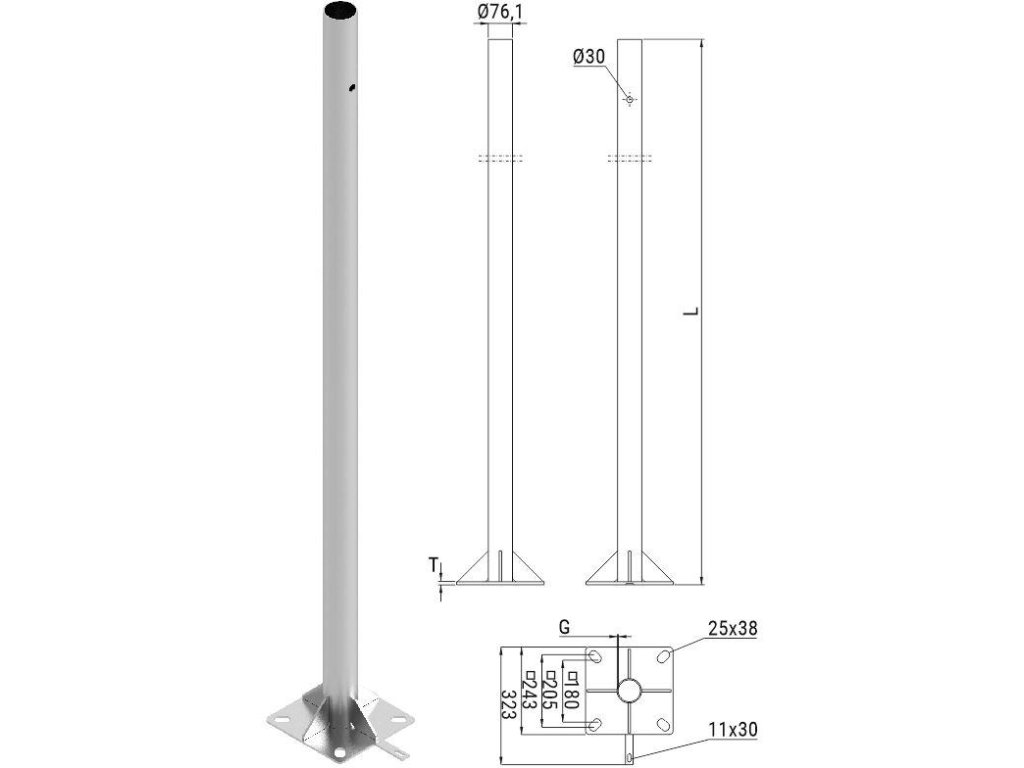 - sloupek má plochou tyč s podlouhlým otvorem Ø11 pro uzemnění