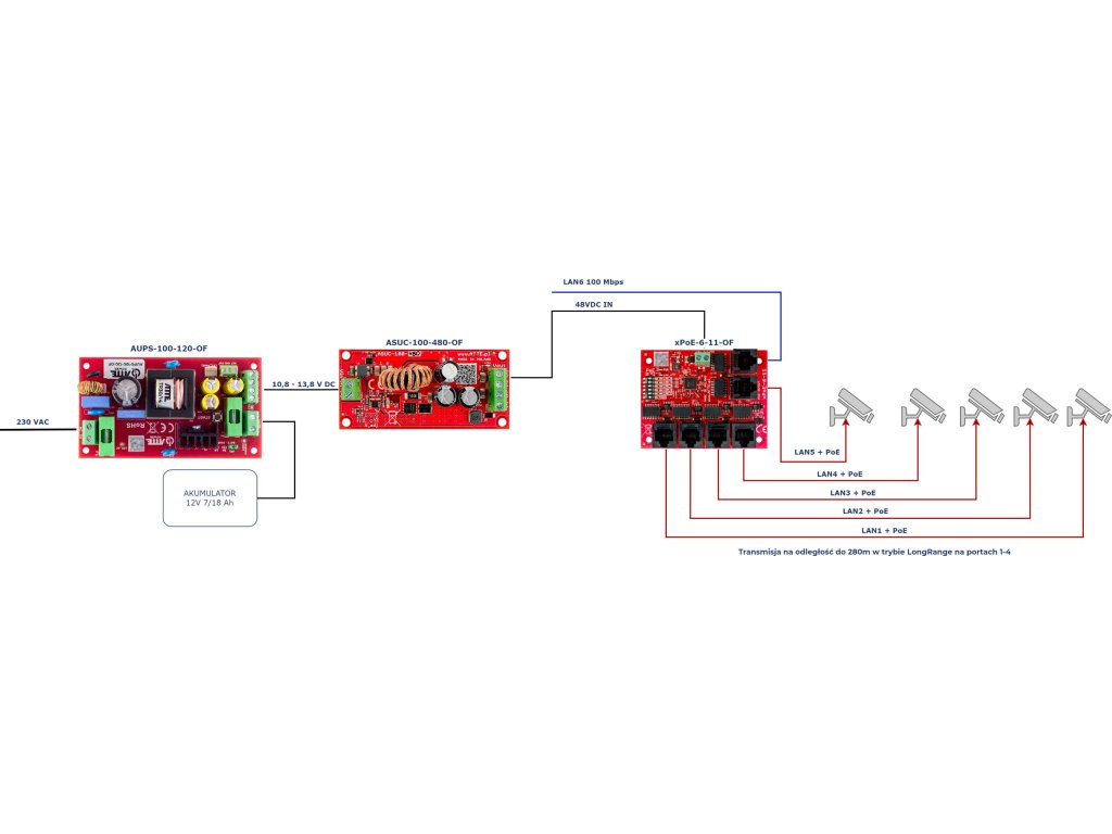 Použití ASUC-100-480-OF pro dálkové napájení kamer