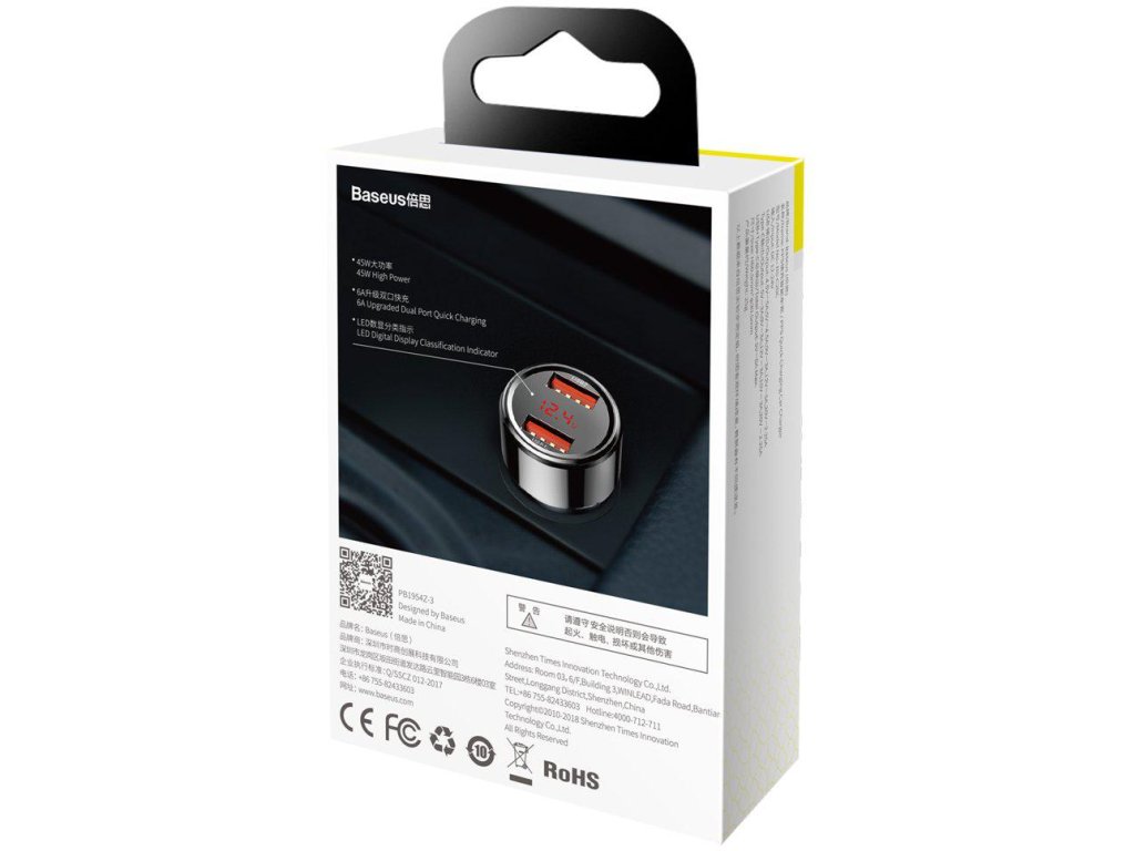 - Bezpečnost: zařízení Baseus Magic CCMLC20A-01 45W 6A 2x USB-A QC 3.0 má pokročilou ochranu proti přepětí, přehřátí a zkratu, která chrání zařízení a vůz před poškozením.