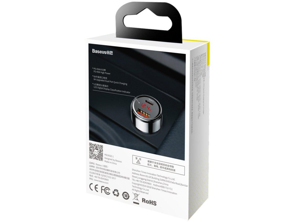 Baseus Magic CCMLC20C-01 45W 5A 1xUSB-A + 1xUSB-C QC 4.0+ / QC 3.0 - nabíječka do auta s LED displejem