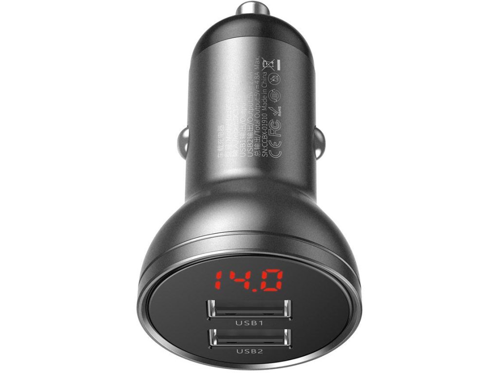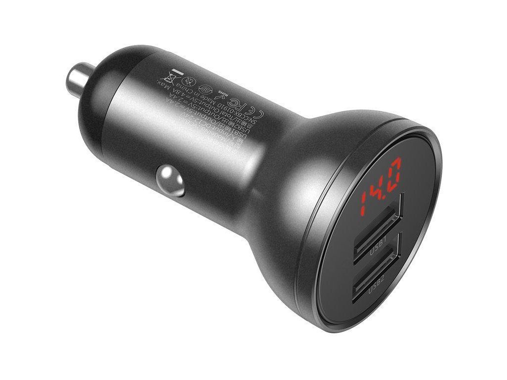 Baseus Digital Display CCBX-0G 24W 4,8A 2x USB-A nabíječka do auta plně bezpečná pro použití