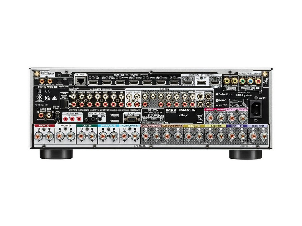 - flexibilita konfigurace: AVC-X6800H nabízí mnoho možností konfigurace a flexibilitu pro přizpůsobení domácího kina. Podporuje 13,4kanálové zpracování, režim předzesilovače, Audyssey MultEQ XT32 a volitelný upgrade Dirac Live a Dirac Live Bass Control (za poplatek)