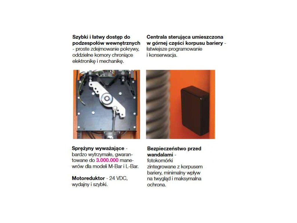 Elektromechanická závora M7BAR pro soukromé, veřejné a průmyslové aplikace s délkou ramene až 7 metrů je určena pro velmi intenzivní použití. Robustní ocelová konstrukce a nové odolné pružiny zaručují až milion cyklů. Ramena jsou navržena v eliptickém tvaru, takže jsou odolná vůči silnému větru.