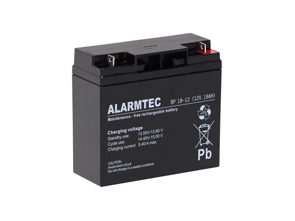 Alarmtec BP 18 12 je uzavřený a bezúdržbový článek z řady BP, který vyniká kvalitou a zaručenou spolehlivostí po mnoho let - až 5 let. Baterie je vyrobena technologií AGM, při níž je elektrolyt absorbován separátory ze skleněných vláken. Díky tomu mají zařízení AGM nízký vnitřní odpor, což se projevuje vysokým napětím na svorkách a dlouhou dobou provozu. Baterie Alarmetec 12 V 18 AH BP je určena pro použití v: