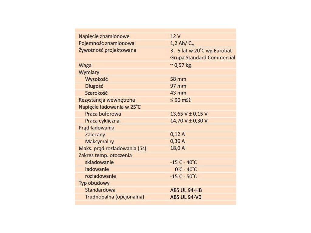 | Kapacita: | 1,2Ah |