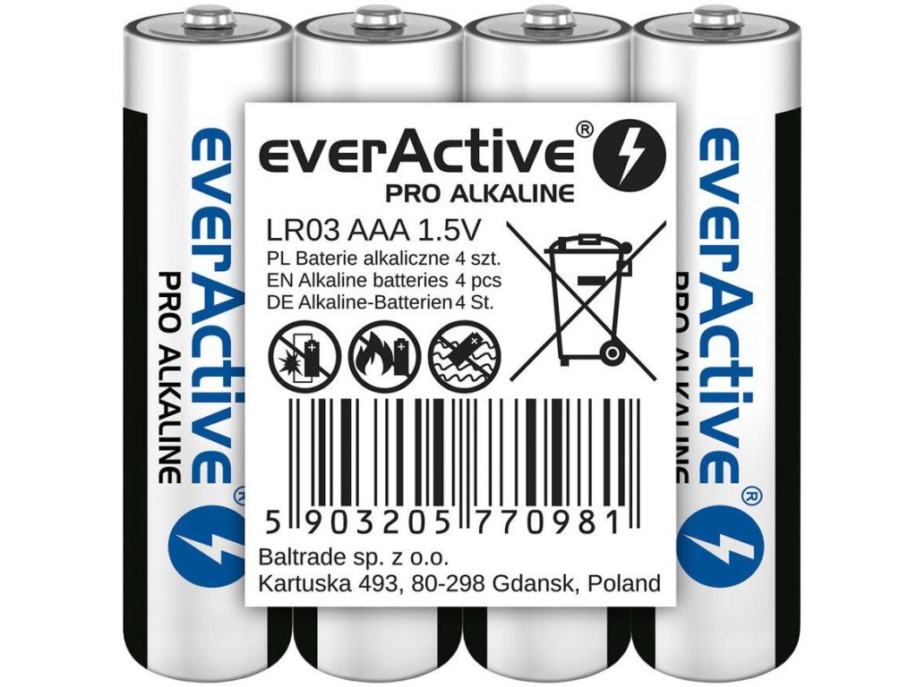 Baterie LR03 (AAA) everActive Pro Alcaline (4 balení fólie) - klíčové vlastnosti: