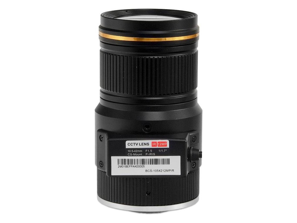 Objektiv 10,5 ~ 42 mm určený pro použití s fotoaparáty s rozlišením až 12 Mpx. Automatická clona typu P-Iris. Objektiv má skleněné čočky s antireflexními vrstvami. IR korekce pro použití s infračervenými přísvitem.