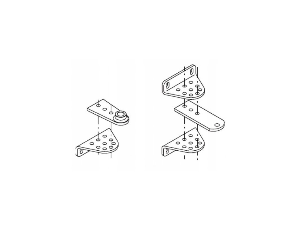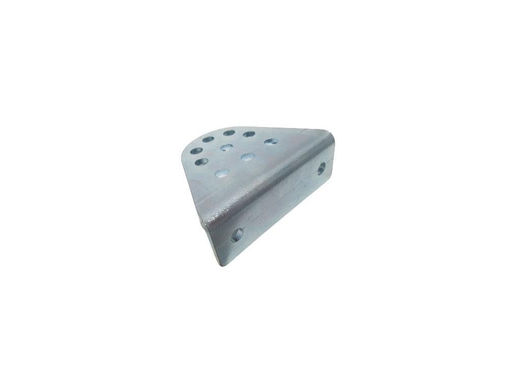 - Vícepolohový montážní držák. Tloušťka plechu: 4 mm, pozinkovaný, otvory: ⌀ 8 mm. Rozteč montážních otvorů pro sloupky: 76 mm