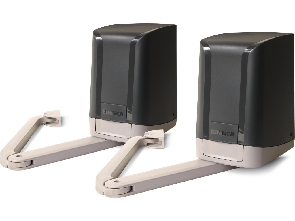 Sada pohonů křídlové brány, která umožňuje automatizovat dvoukřídlou bránu s maximální světlou výškou vjezdu 5 metrů. Ideálně se hodí proširoké sloupky (montážní rozměr - 28 cm)kde je vzdálenost od osy kloubu velká. Sada Beninca KSAM24.PM je ideálním řešením pro obytné a dvorní brány, které je nenápadné, snadno se instaluje, poskytuje minimální náklady na údržbu a vysokou spolehlivost.