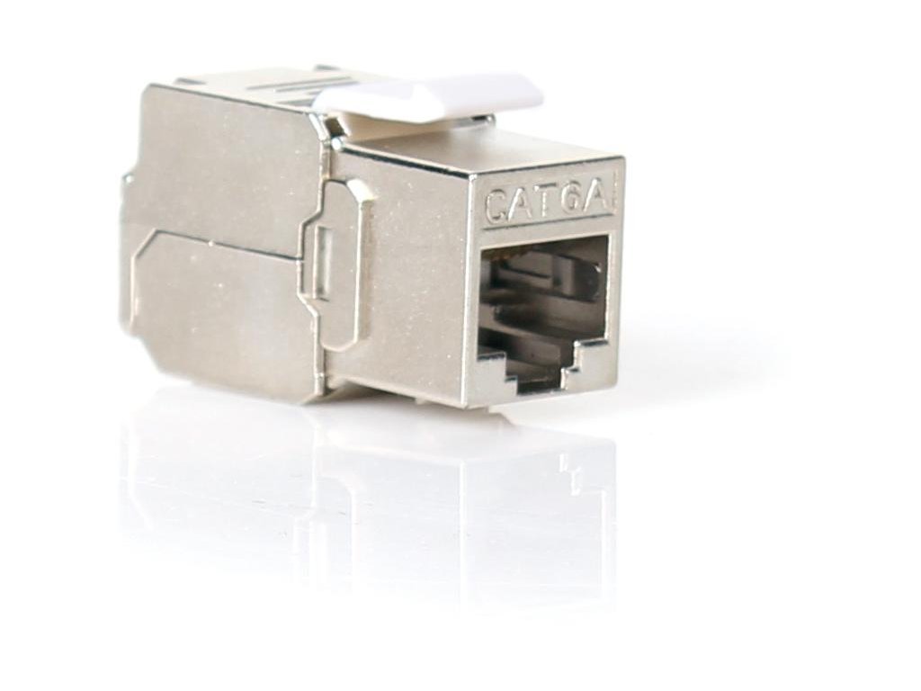 Keystone modul RJ-45 pro FTP Cat. 6A s dvojitým zakončením IDC. Pro instalaci do rozváděčů a připojovacích zásuvek s otvory podle 568A/B.