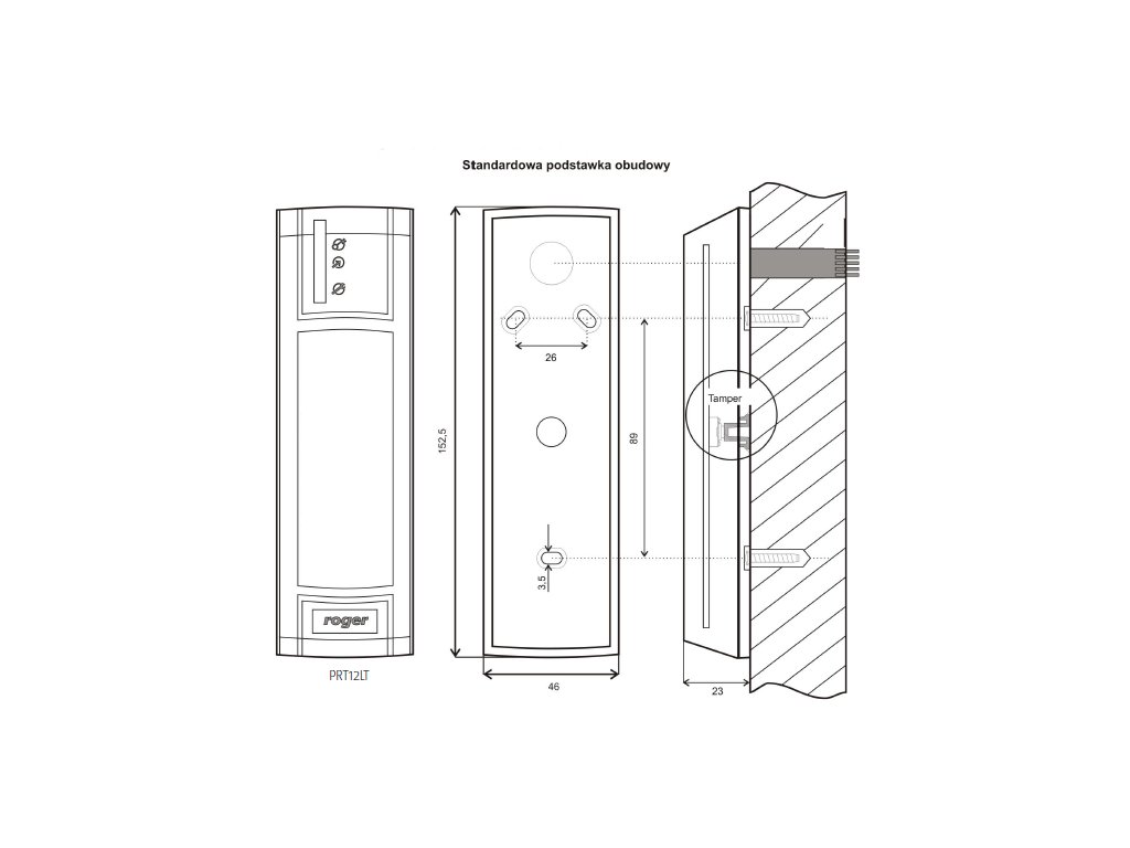 Bezkontaktní čtečka Roger PRT12LT-BK-G - schéma