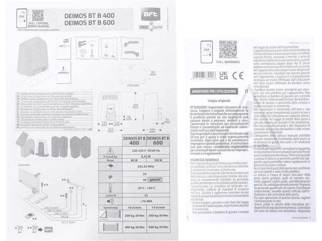 BFT DEIMOS BT B600 KIT EE pro posuvné brány