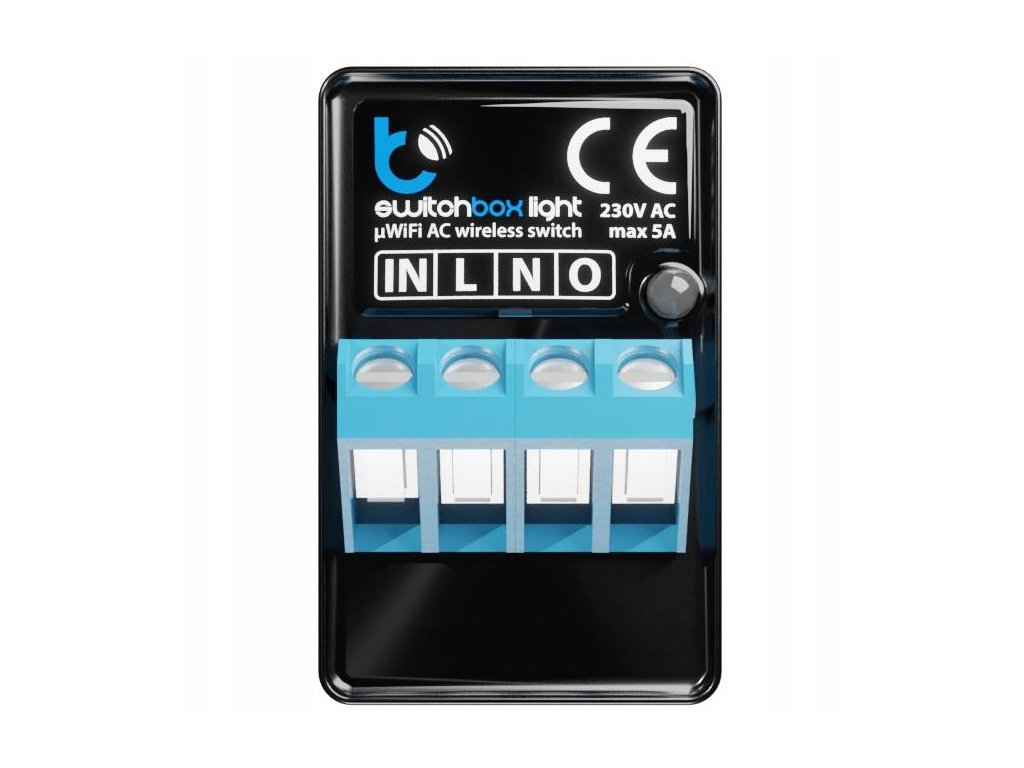 switchBox LIGHT je nejmenší řídicí jednotka na světě, která umožňuje bezdrátové zapínání a vypínání elektrických zařízení napájených ze sítě 230 V o výkonu až 1 kW z jakéhokoli místa na světě.