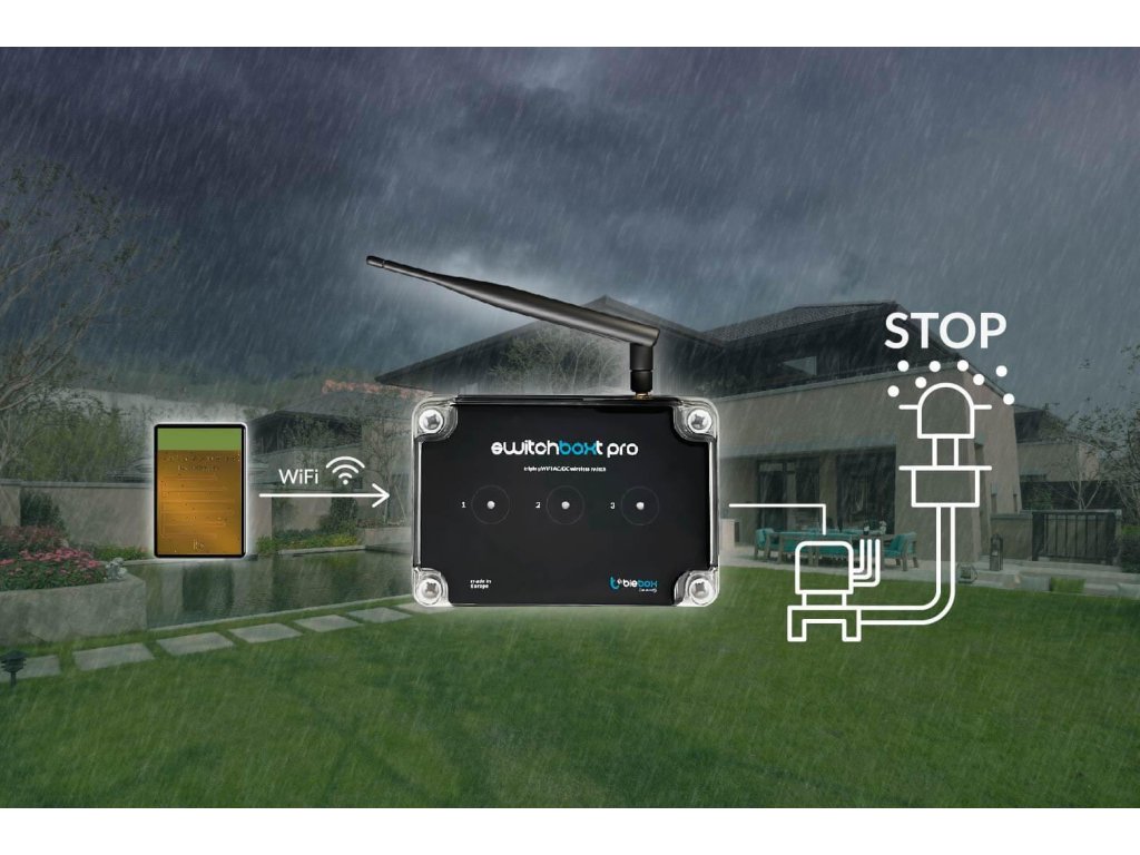 - Použití více distribuovaných actionBoxS + detektory pohybu který bezdrátově odešle příkazem switchBoxT PRO zapnete příslušný okruh zahradního osvětlení. Již žádné "kilometry dlouhé kabely"