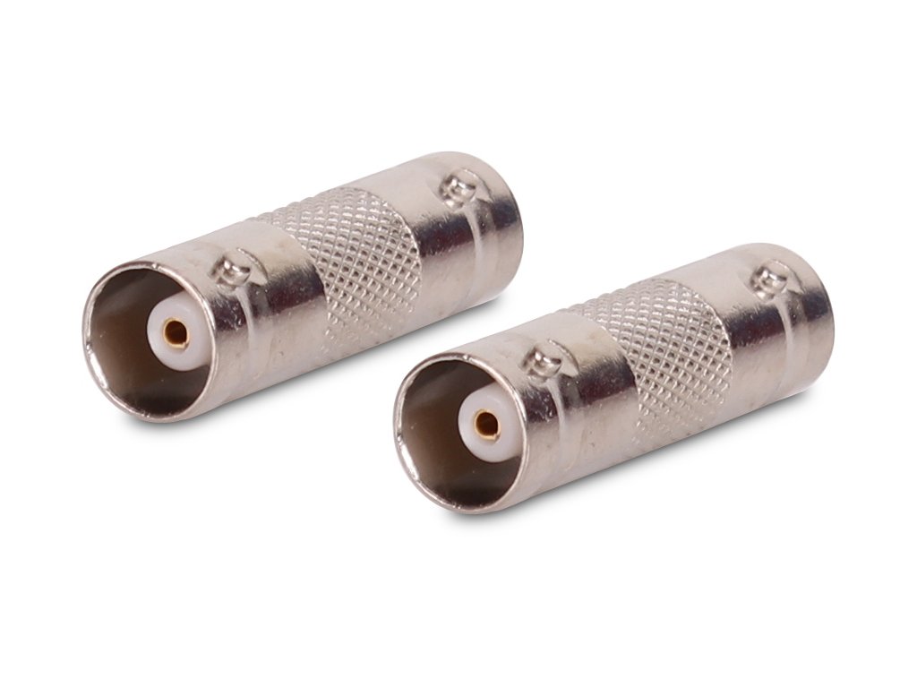 Přechodka z BNC zásuvky na BNC zásuvku, tzv. soudek, kovové provedení, umožňuje připojení koaxiálních kabelů zakončených BNC konektory.