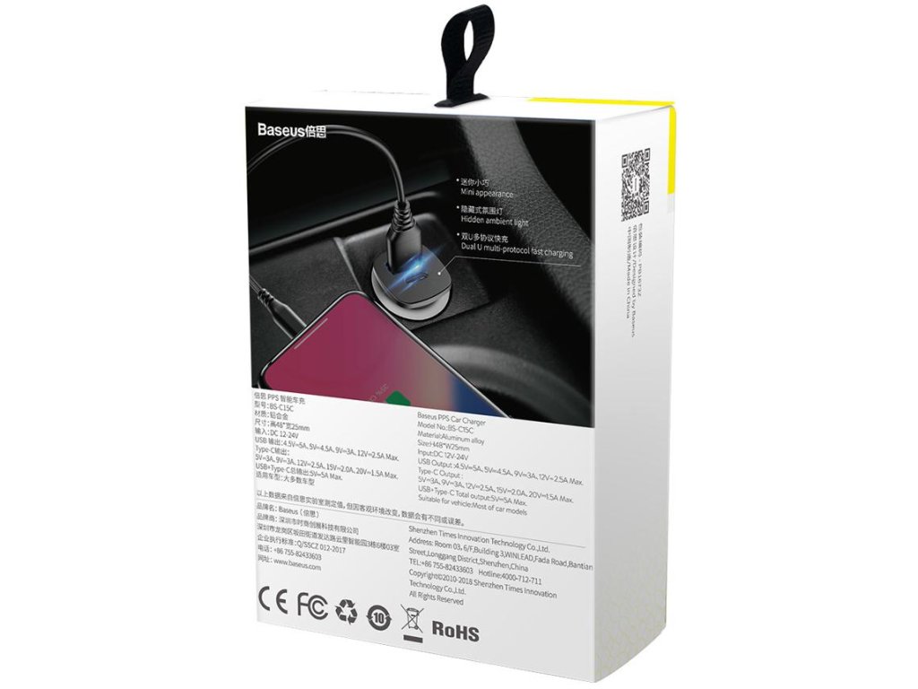- Nabíječka do auta Baseus Square CCALL-AS01 byl navržen tak, aby pod jeho stylovým krytem byly umístěny integrované obvody nezbytné pro správný a bezpečný provoz.