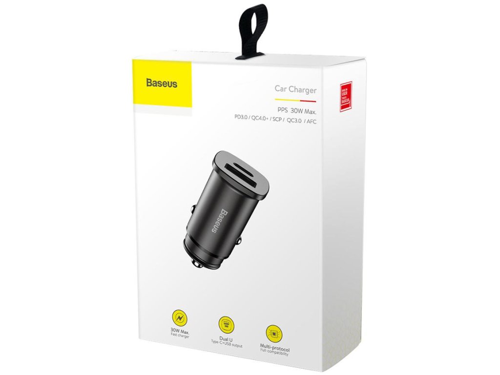 Baseus Square CCALL-AS01 30W 5A 1x USB-A 1x USB-C QC nabíječka do auta v naprostém bezpečí!