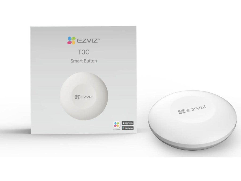 - Smart tlačítko EZVIZ T3C pro rychlou aktivaci senzorového systému EZVIZ a zajištění ochrany domova.