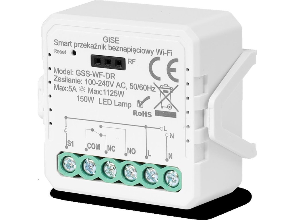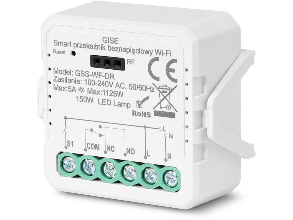 GISE GSS-WF-DR je univerzální relébezpotenciálové (beznapěťové) s volitelným režimemNO/NC (normálně otevřeno/uzavřeno), určené k inteligentnímu ovládání zařízení, která nevyžadují napájení z relé. Díky integraci do ekosystémuTUYA Smart / Smart Life, ideálně se hodí pro automatizaci domácností, kanceláří, systémů HVAC, ovládání rolet, vrat nebo zabezpečovacích systémů.