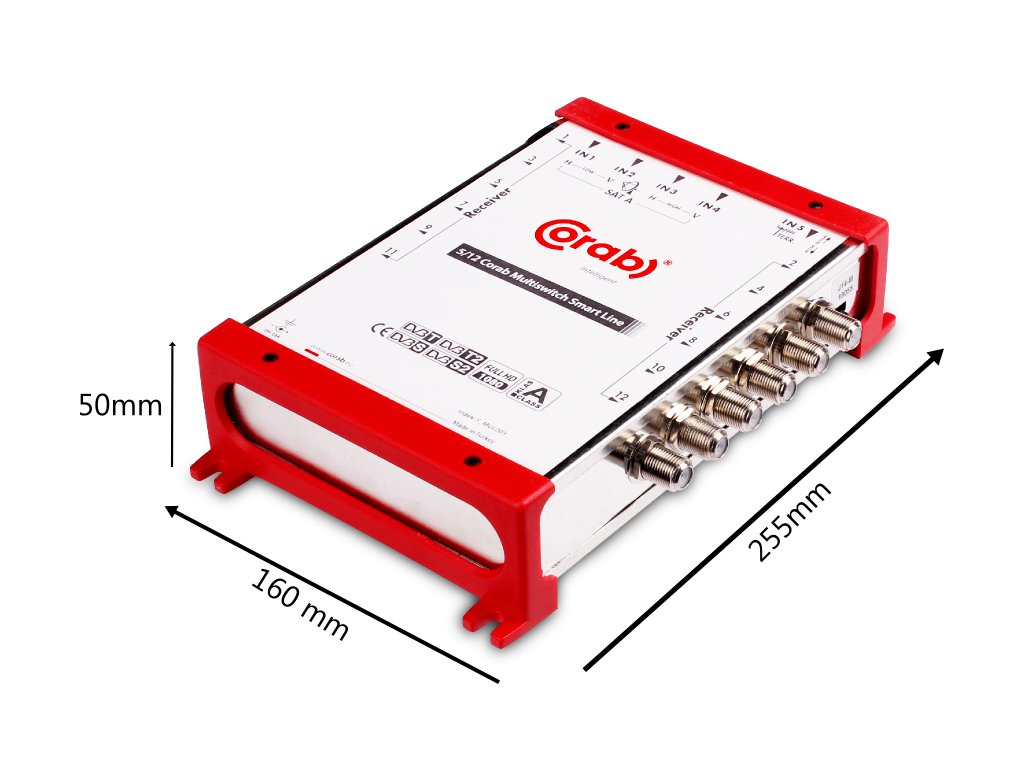 CORAB MULTISWITCH SMART LINE je zařízení sloužící k rozdělení televizního signálu, má 5 vstupů: 4 satelitní a 1 pozemní a 12 satelitních/pozemních výstupů. Multipřepínač má vnitřní napájení a vysoce kvalitní kryt, který zajišťuje vysokou úroveň stínění. V případě příliš silného signálu má přístroj možnost jeho snížení o +/- 20 dB pomocí přepínače "active".