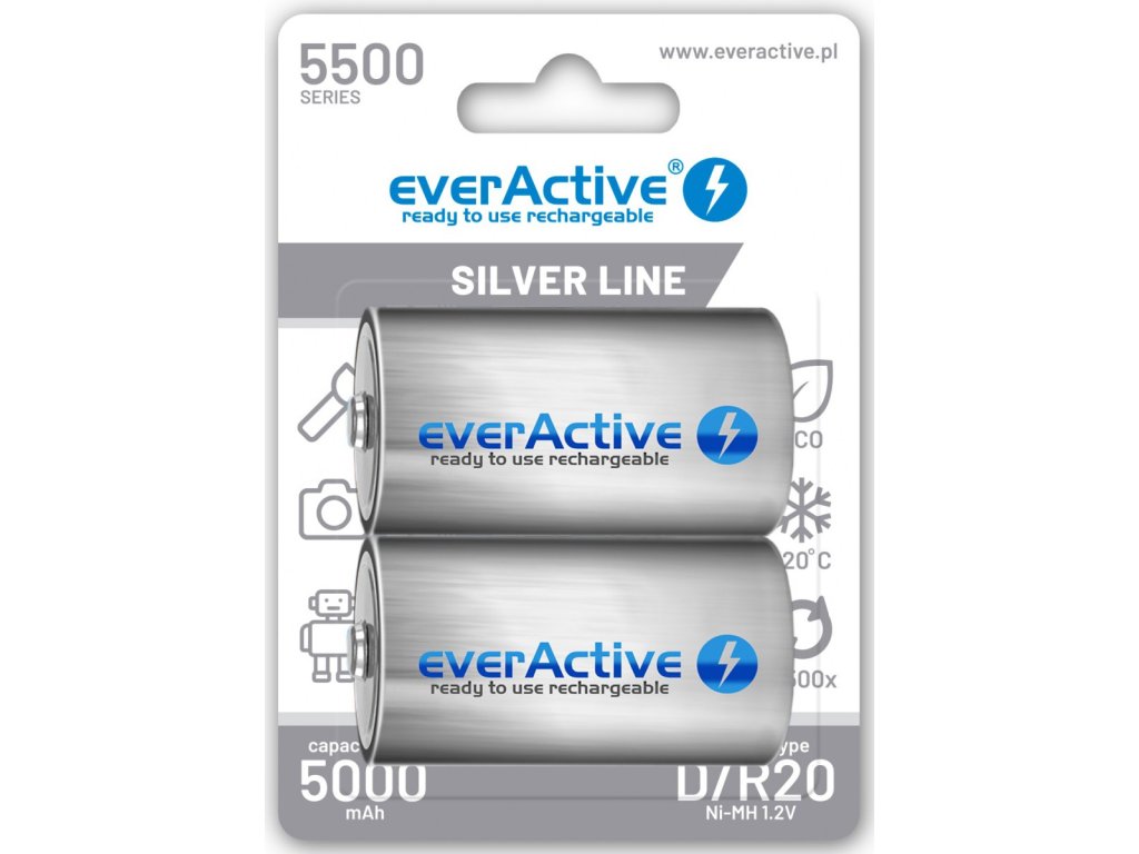 D / R20 everActive Ni-MH 5500 mAh dobíjecí baterie připravené k použití Silver line (krabička 2 ks)