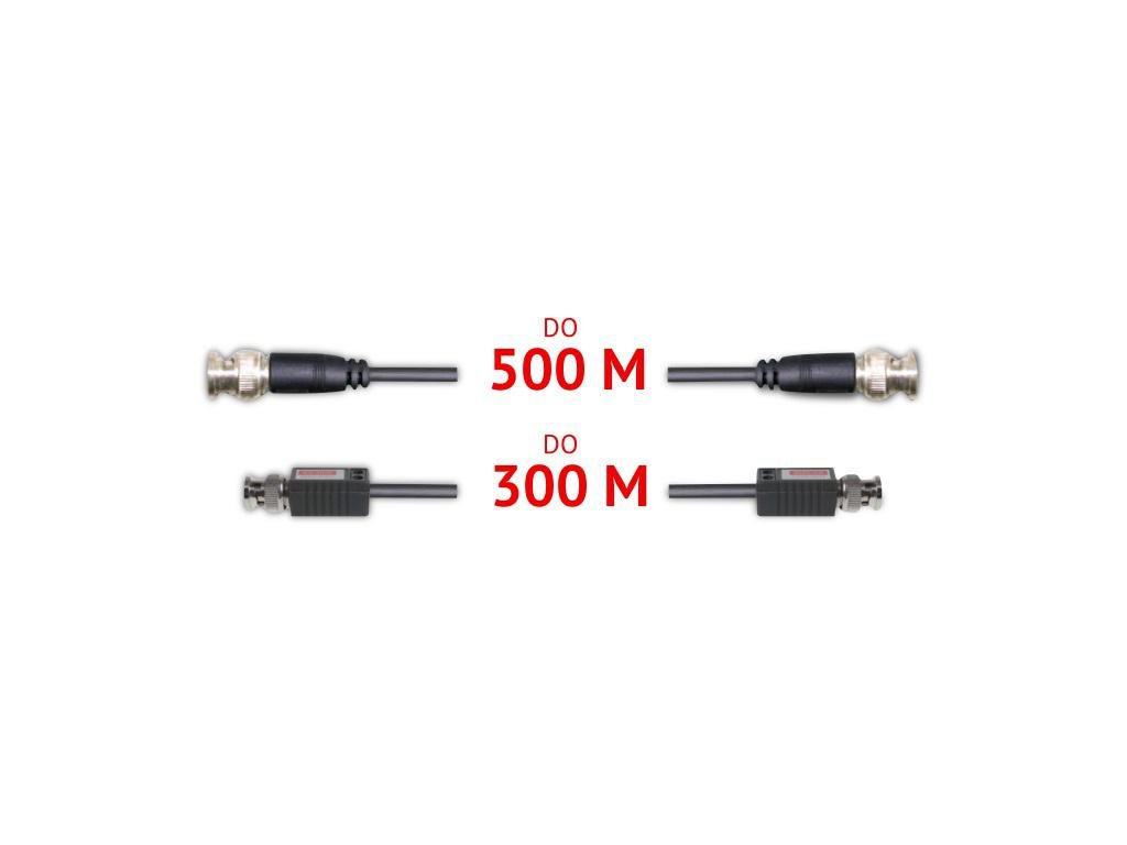 Přenos HD signálu koaxiálním kabelem až na 500 m, pomocí krouceného páru až na 300 m.