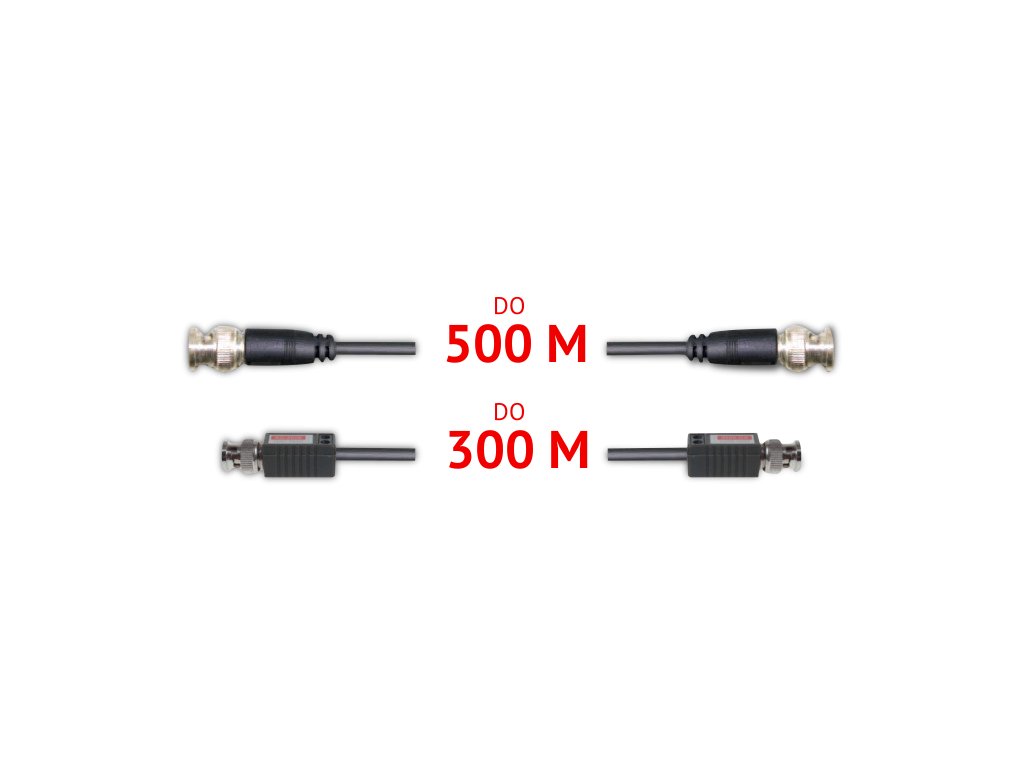Přenos HD signálu koaxiálním kabelem až na 500 m, pomocí krouceného páru až na 300 m.
