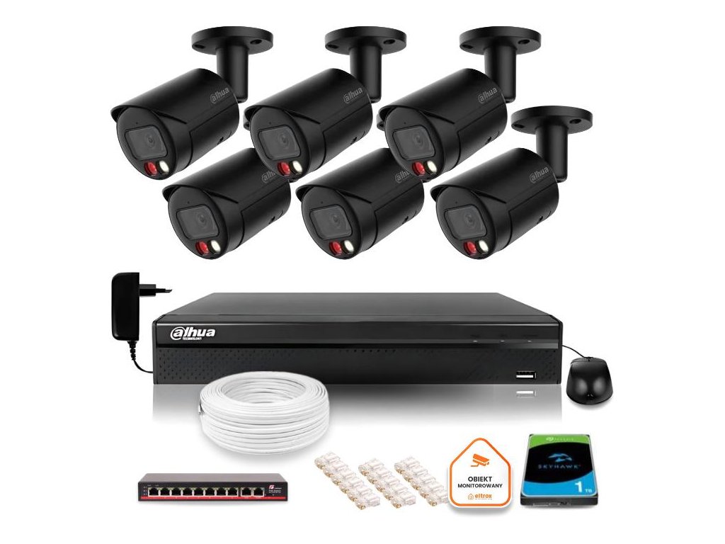 Dahua IP dohledová sada 4MPx 2K 6 venkovních černých kamer s 1TB diskem