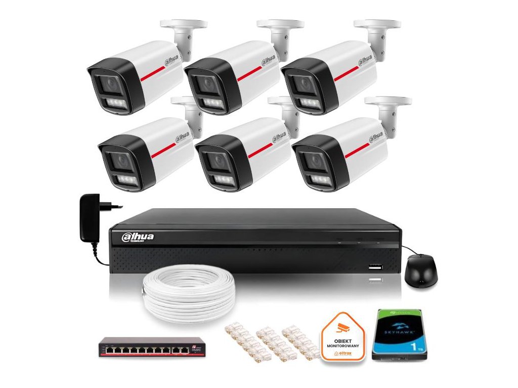 DAHUA IP dohledová sada 6 venkovních LED kamer 50m WizColor 2K