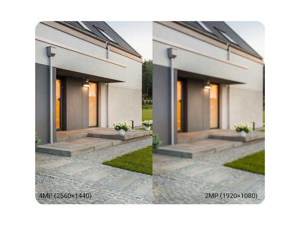 Pokrývá větší oblast a poskytuje více detailů! Venkovní kamera s rozlišením 4 Mpx umožňuje prohlížet videa a fotografie ve vyšším rozlišení než 1080p. Je ideální na dvorek a do chodby.