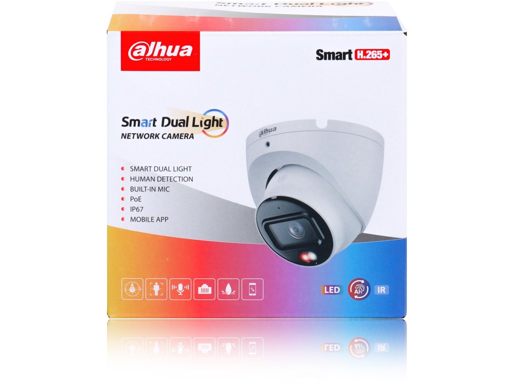 IP kamera DAHUA IPC-HFW1639T-A-IL-0360B-S6 sChytré duální světlo zaručuje vynikající viditelnost za všech podmínek díky použití dvojitého osvětlení. Integrované diody LED a infračervené (IR) světlo umožňují plnobarevný obraz ve dne i v noci a poskytují plnou kontrolu nad sledovaným prostorem.