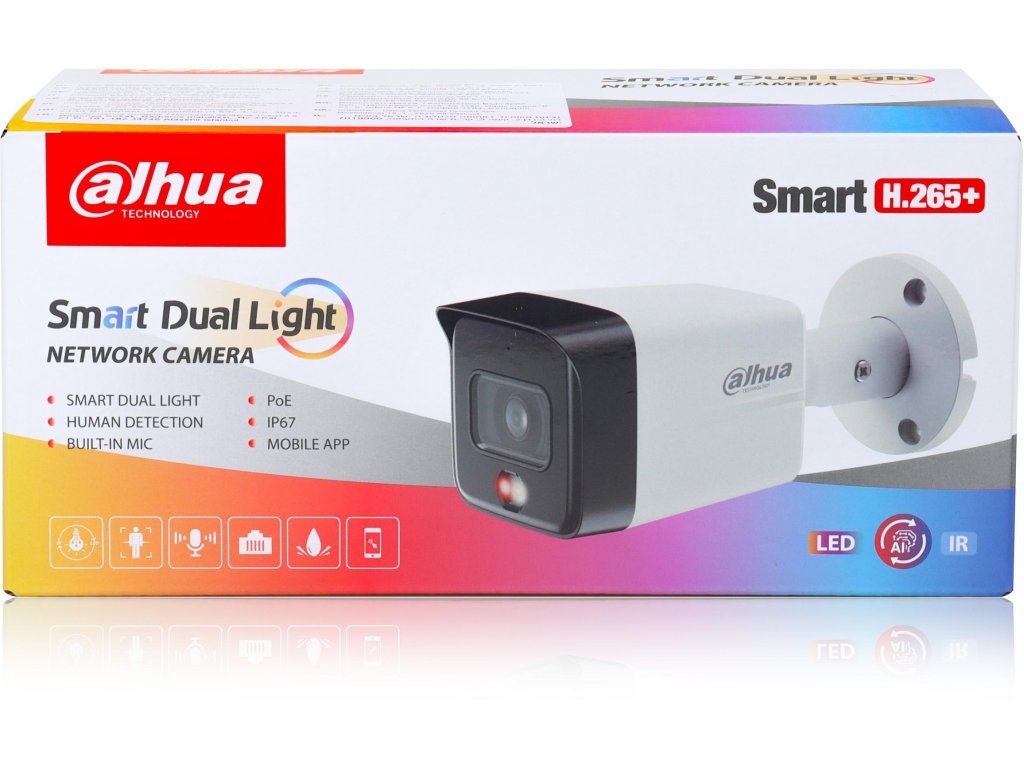 IP kamera DAHUA IPC-HFW1639TC-A-IL-0280B-S6 sChytré duální světlo zaručuje vynikající viditelnost za všech podmínek díky použití dvojitého osvětlení. Integrované diody LED a infračervené (IR) světlo umožňují plnobarevný obraz ve dne i v noci a poskytují plnou kontrolu nad sledovaným prostorem.