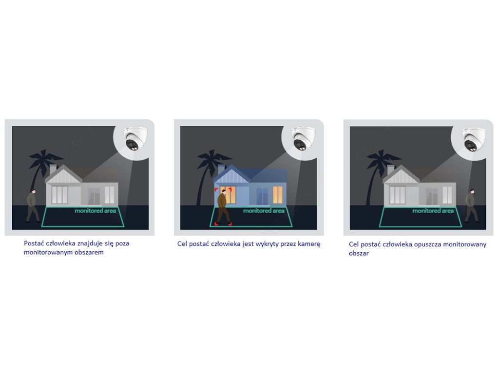 - Inteligentní monitorování: narušení, překročení čáry (obě funkce podporují klasifikaci a přesnou detekci vozidel a osob)
