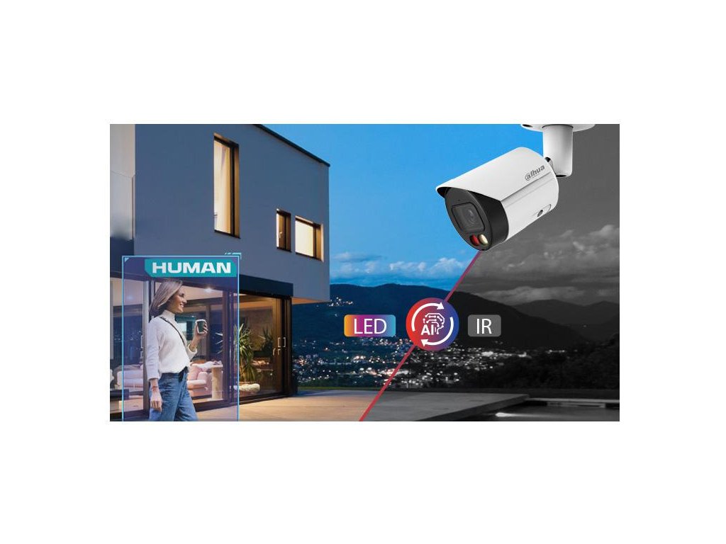Technologie Dahua Smart Dual Illuminators využívá inteligentní algoritmus k přesné detekci cílů. Infračervený přísvit je běžně zapnutý v noci. Když kamera detekuje cíl, zapne se teplé světlo a kamera zaznamená plnobarevné video a klíčové informace o událostech. Když se cíl nachází mimo sledovanou oblast, teplé světlo se vypne a IR přísvit se opět zapne, což pomáhá snižovat "světelné znečištění" v oblasti.