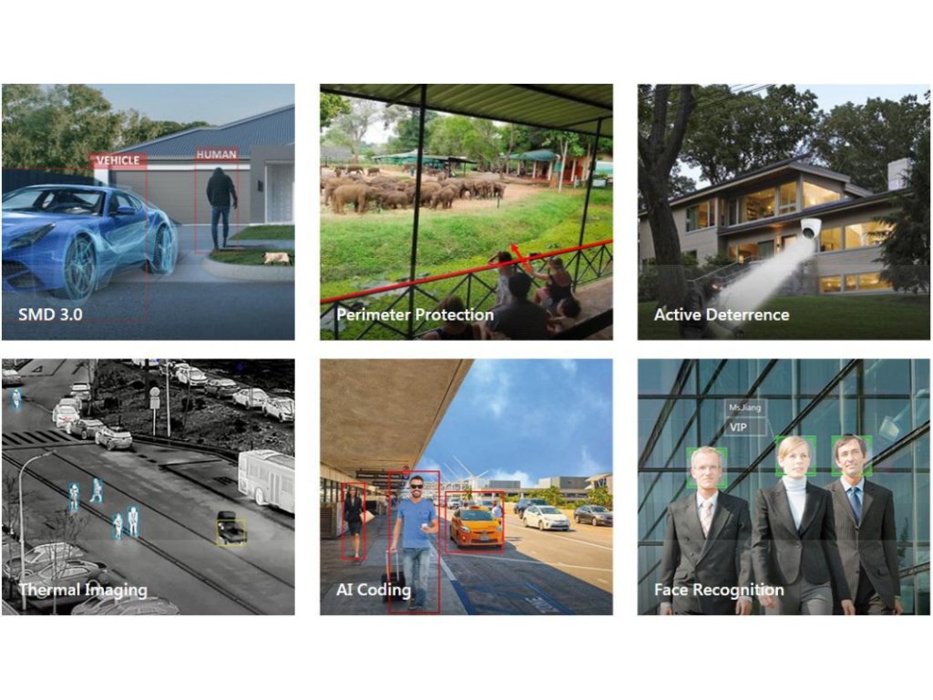 - WDR, 3D NR, HLC, BLC, digitální vodoznak, aplikace na různé monitorovací scény